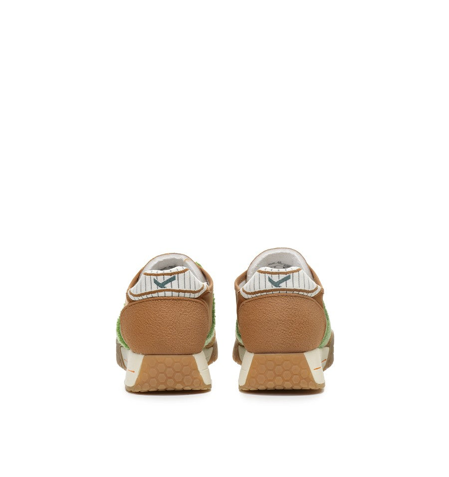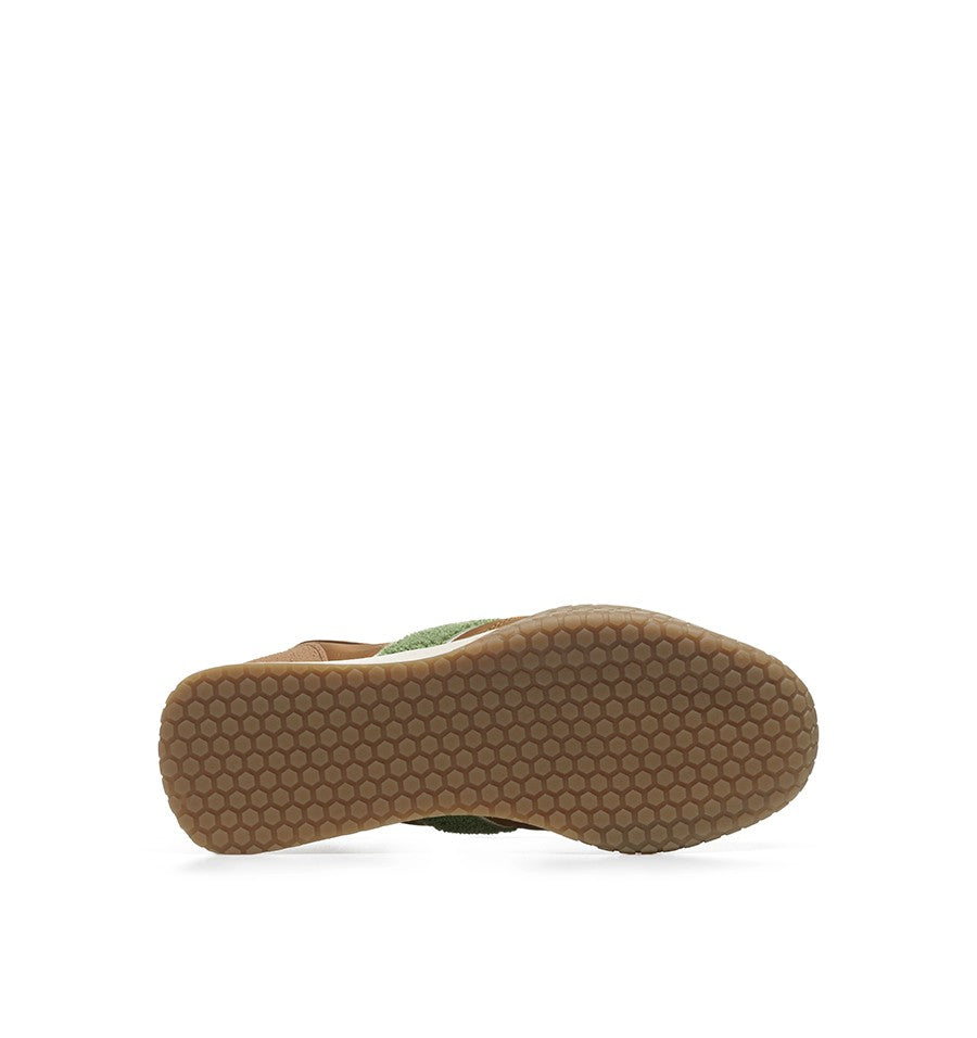 Contemporary vintage trainer. Padded nylon upper, with raw-cut tongue. Suede leather toe and eyestay. Rubber back heel. Double cotton laces. Rubber outsole, with cushioned EVA midsole. Towel fabric lining. Removable super-soft foam insole, mesh lined.