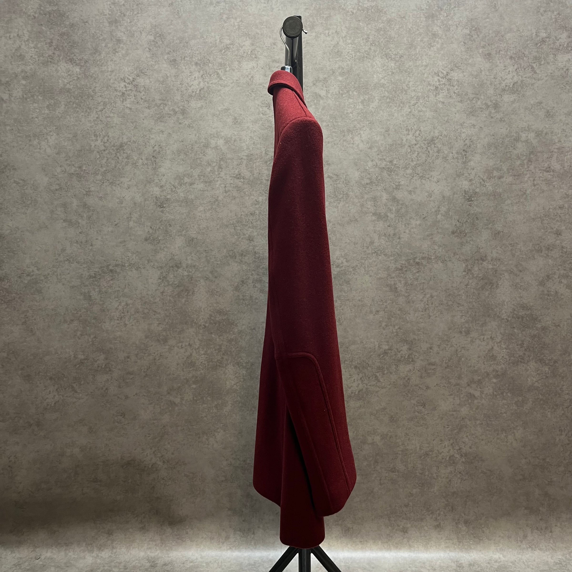 Postbox red wool rich plain overcoat, concealed button Tapered fit