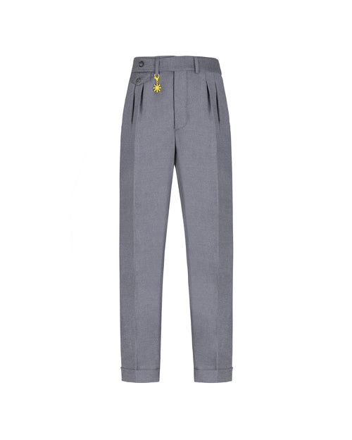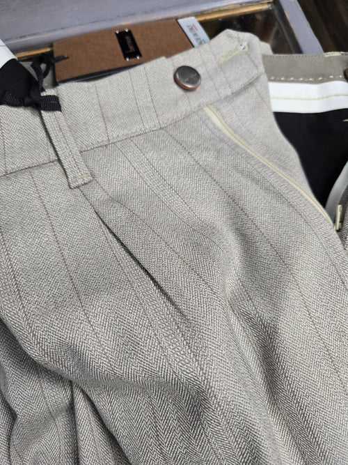 Manuel Ritz gray double pleat stretch wool flannel trousers