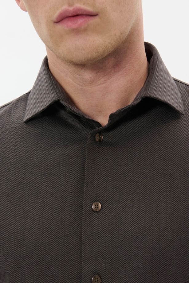 Woven herringbone dark brown shirt