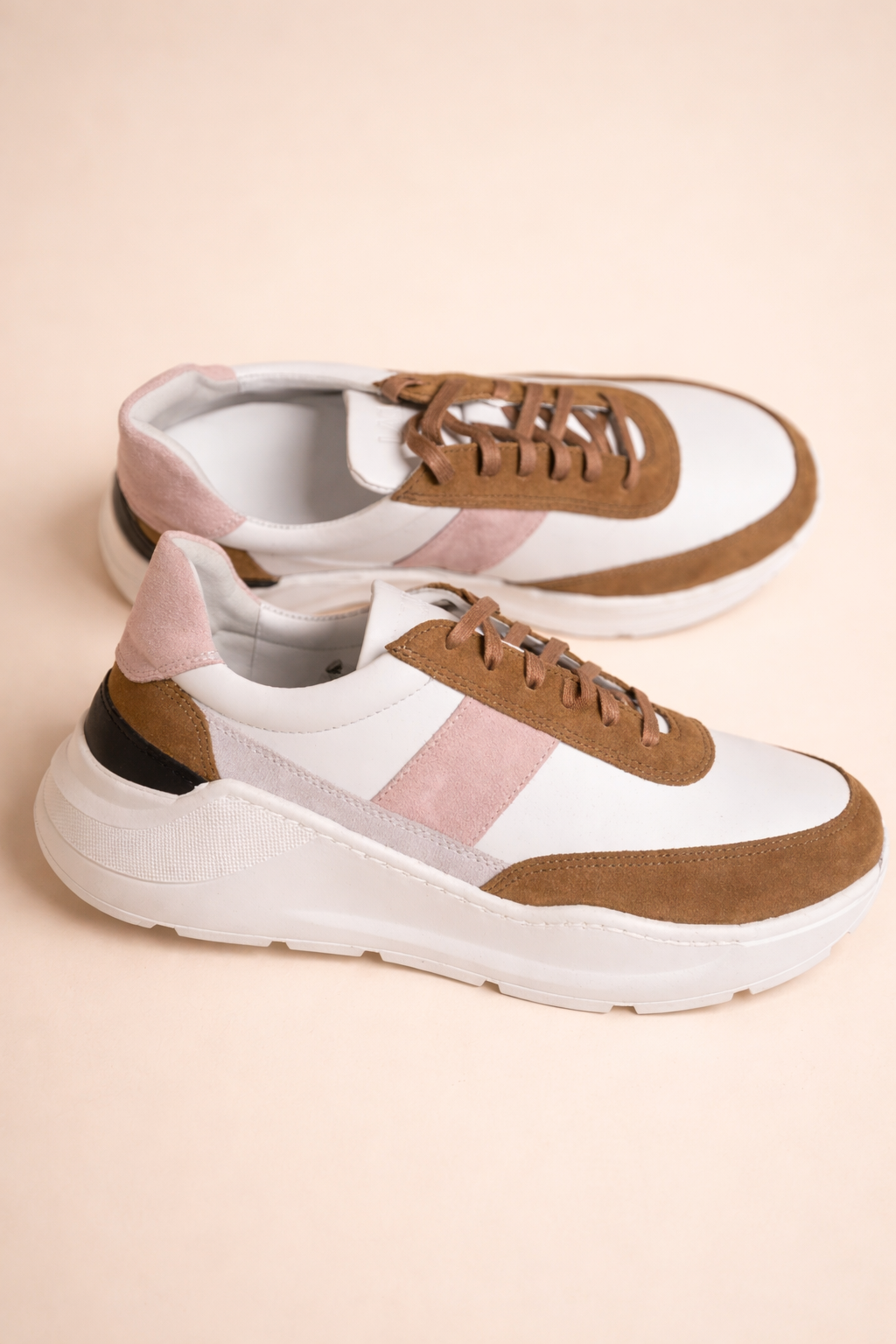 Soft leather upper and super light high sole, with pink and brown