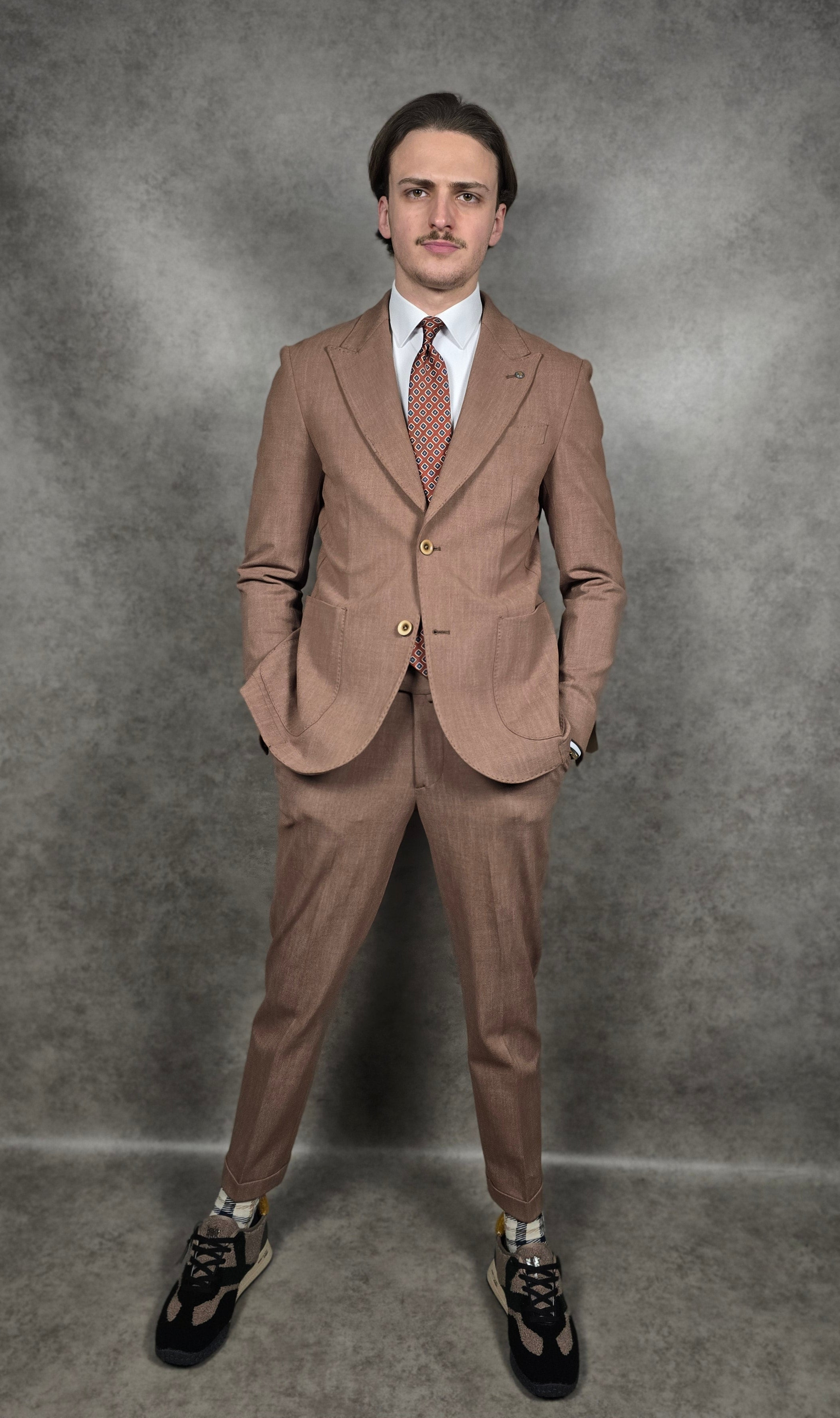 Limited edition Italian tailoring. Deep terracotta brown, buggy lined. These earth tones are perfect for the curated wardrobe